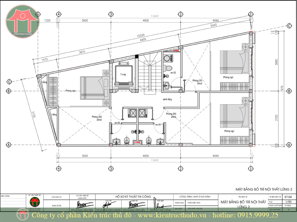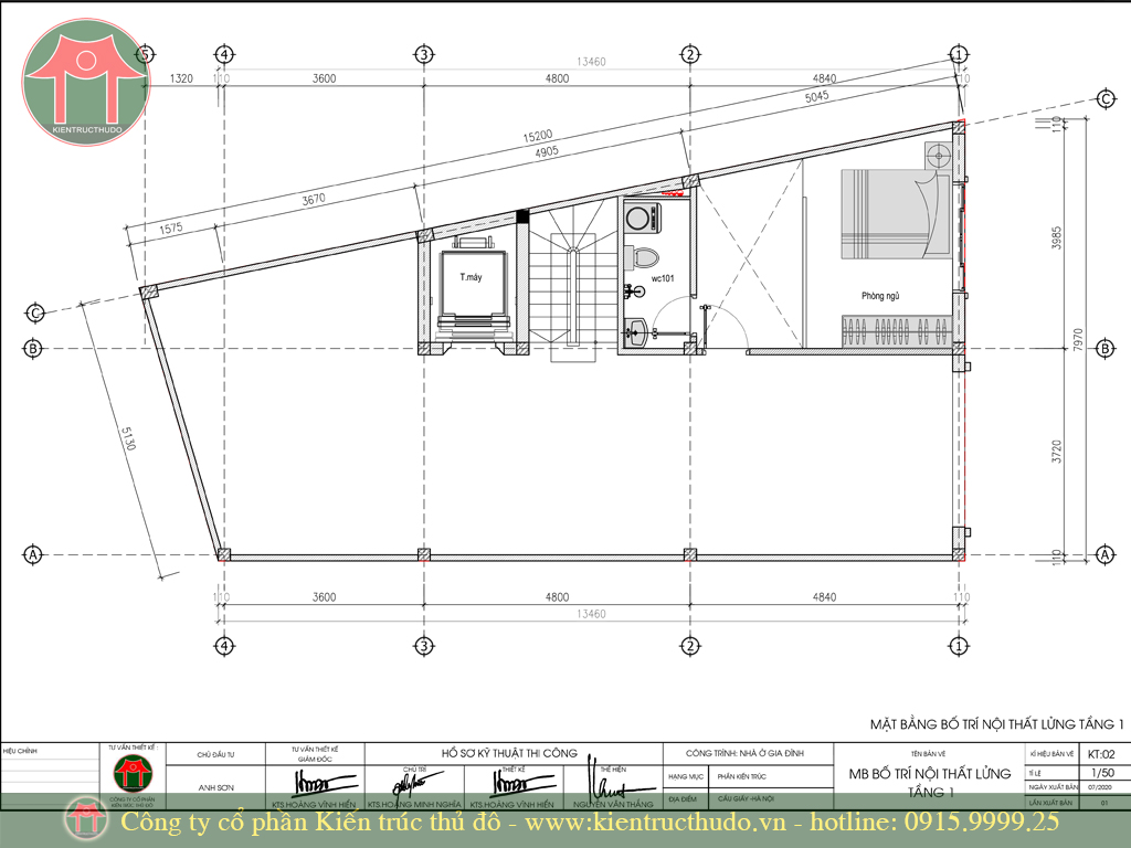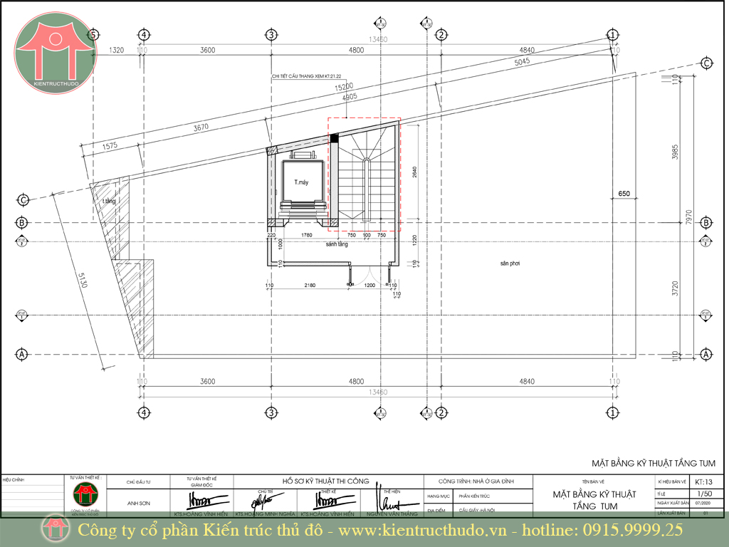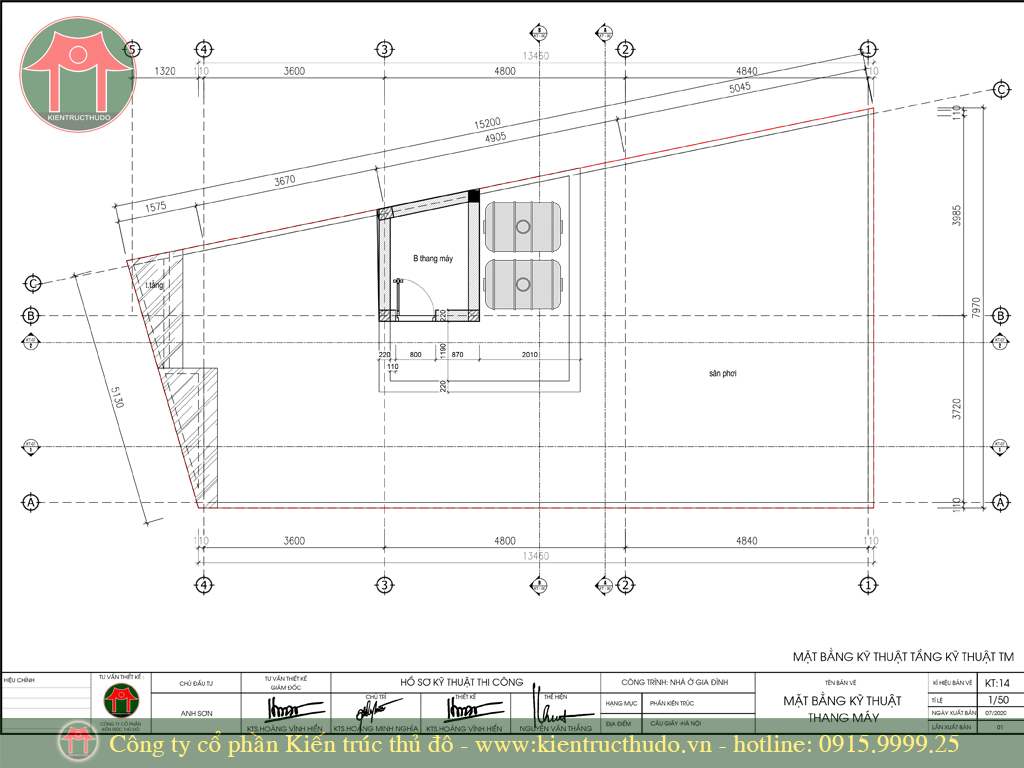Mặt bằng tầng kĩ thuật thang máy, nơi bố trí bể nước mái, phục vụ việc cấp nước cho toàn công trình