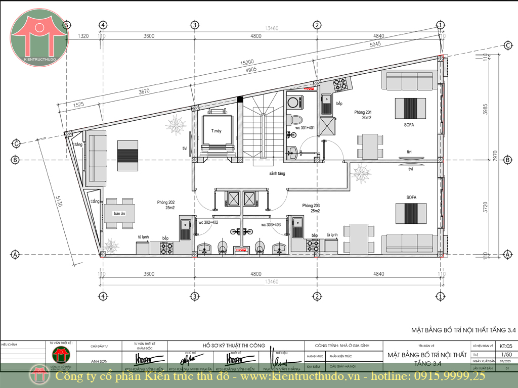 Mặt bằng lửng tầng 3-4 căn hộ cho thuê, nơi ngủ nghỉ của người sử dụng