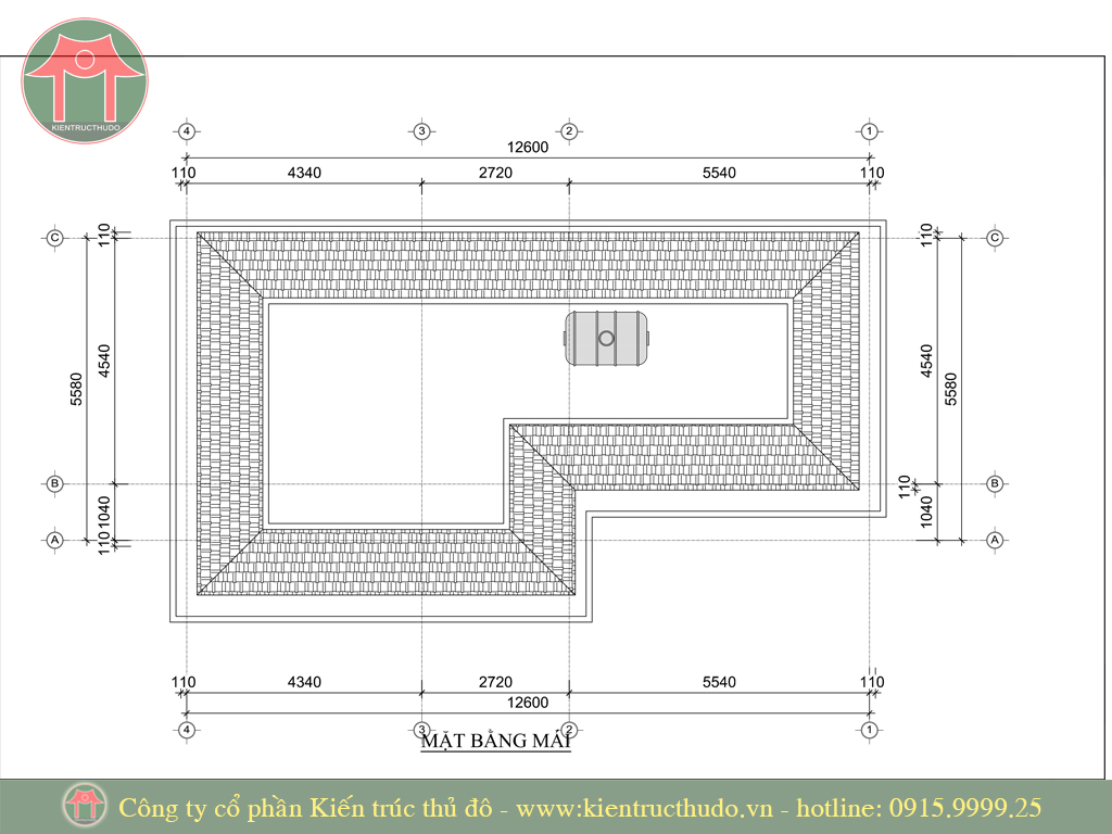 6.Mặt bằng mái trong thiết kế biệt thự hiện đại tại Hà Nội.