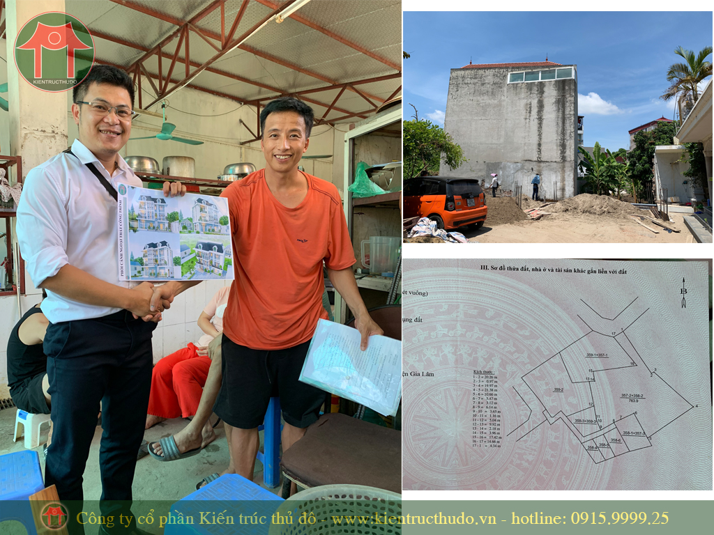 Hiện trạng công trình - giai đoạn thi công móng, chụp ảnh với Anh Chủ đầu tư vui tính, cảm ơn Anh đã tin tưởng để Kiến trúc thủ đô có được Thiết Kế Biệt Thự 3 Tầng đẹp