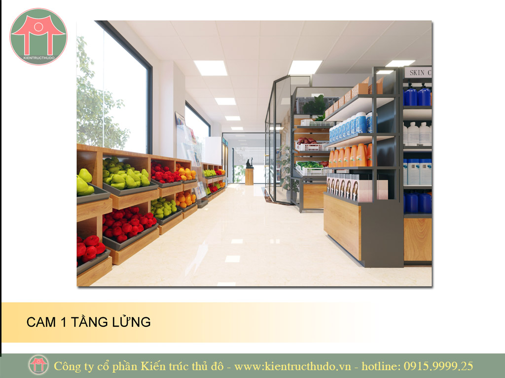 Phối cảnh tầng 1 - mặt tiền - phần cho thuê siêu thị mini - dự kiến 10tr/tháng