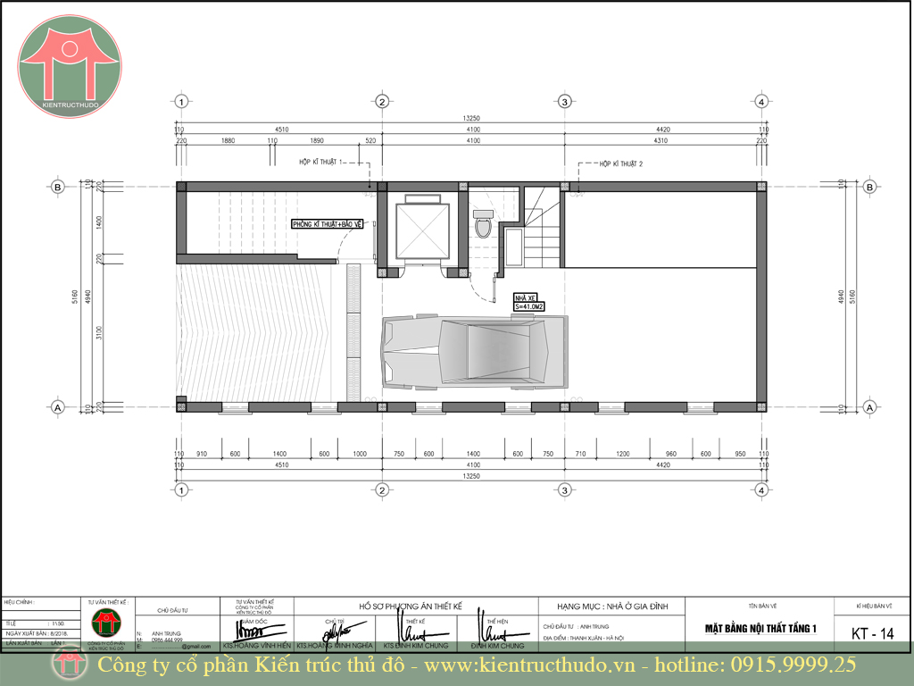 Mặt bằng tầng hầm - nơi để vị trí xe của khách - nơi tập chung hệ thống kĩ thuật - kho, phòng bảo vệ