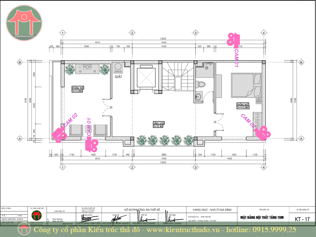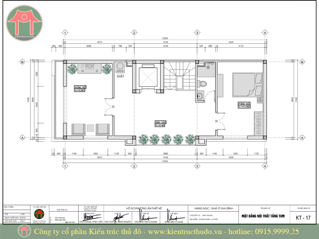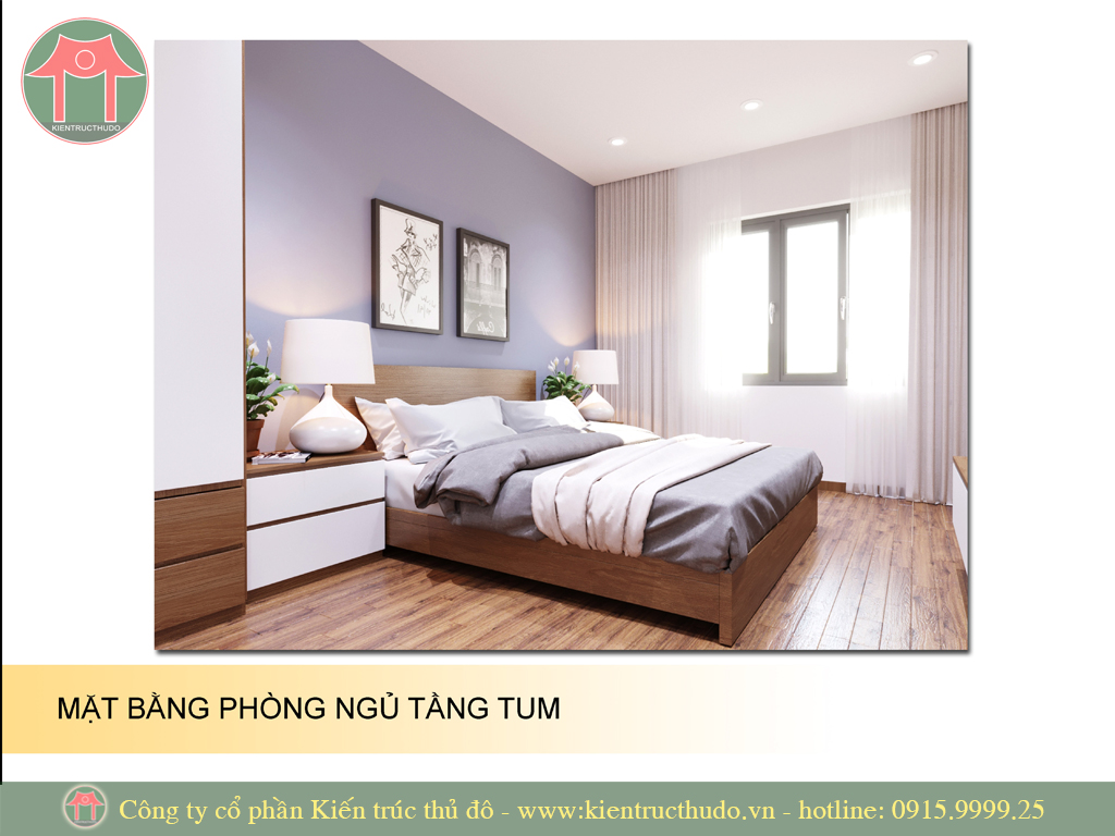 Mặt bằng tầng tum - bố trí 01 phòng ngủ dành cho chủ nhà và bố trí 01 phòng thờ