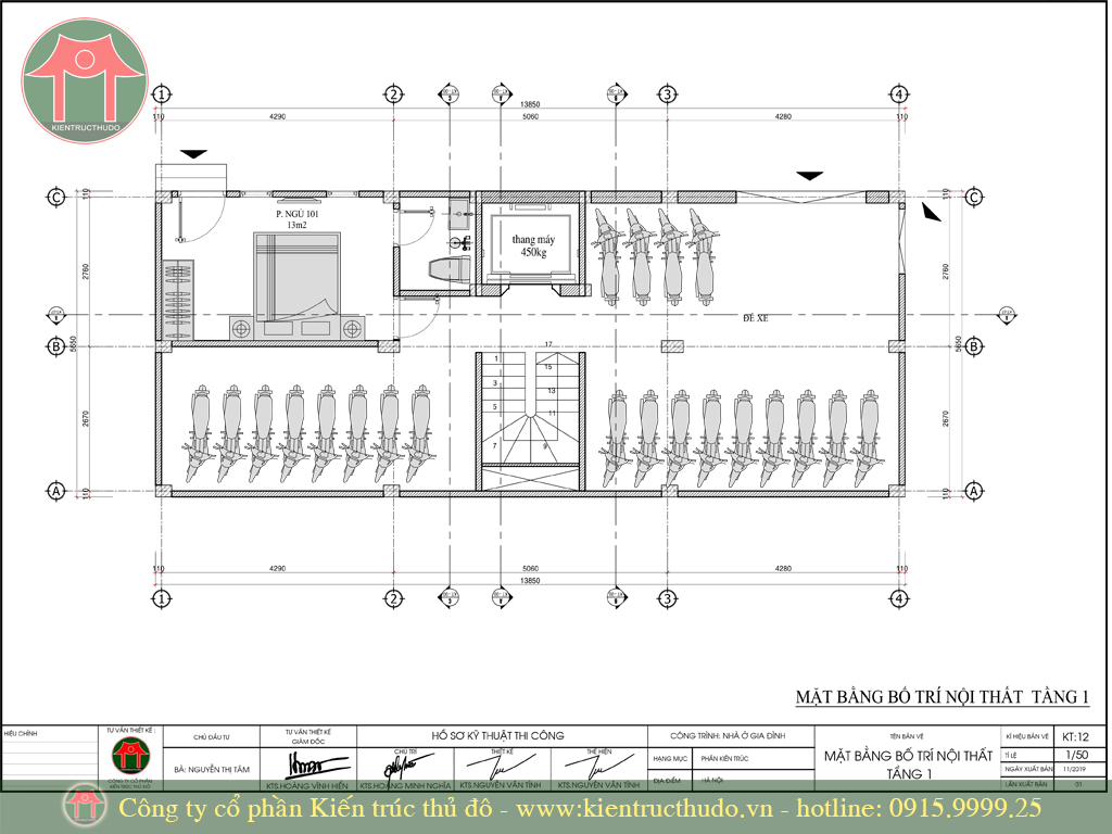 mặt bằng tầng 1, được chúng tôi thiết kế chính dành cho việc để xe máy của căn hộ cho thuê, mỗi căn hộ trung bình 02 xe máy, tổng thể 10 căn hộ sẽ cần tối thiểu 20 xe máy