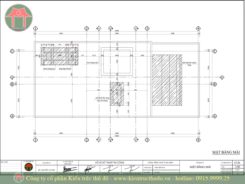 Mặt bằng mái, là sự kết hợp giữa mái bê tông, phần mái che chính, và mái kính, phần mái nhẹ, tăng khoảng thoáng cho logia phí trước ban thờ và phía sân phơi, trồng rau xanh, sạch