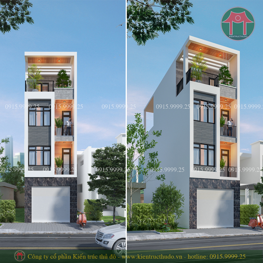 Nhà ống hiện đại nên có từ 3 đến 5 tầng, việc có từ 3 tầng trở lên, sẽ giúp kiến trúc thanh thoát hơn, tỉ lệ ngang dọc cân đối hơn, và quan trọng là có các điểm lặp lại rất tốt cho thẩm mỹ nhìn từ bên ngoài