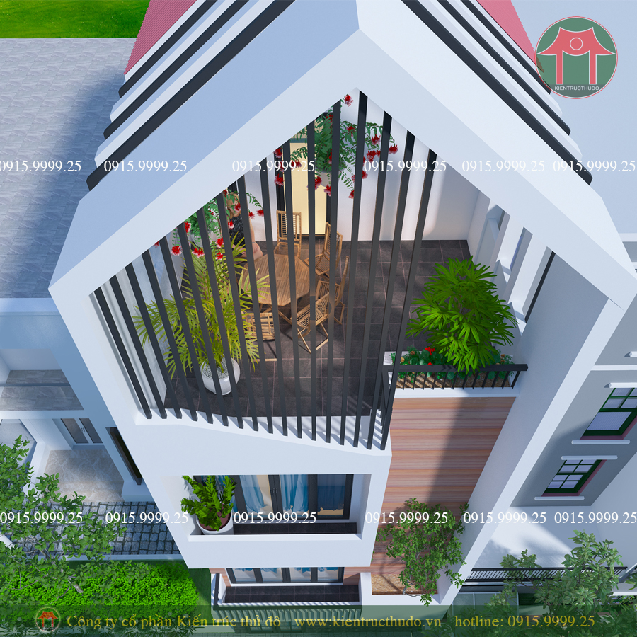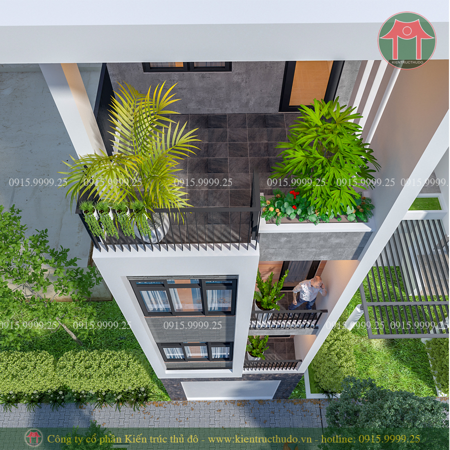 Và một điều không thể thiếu đối với công trình hiện đại, đó chính là cây xanh, khoảng xanh sẽ đan xen với màu trắng tường, màu đen hoặc nâu của lan can, làm cho ngôi nhà của bạn thật sự nổi bật đấy