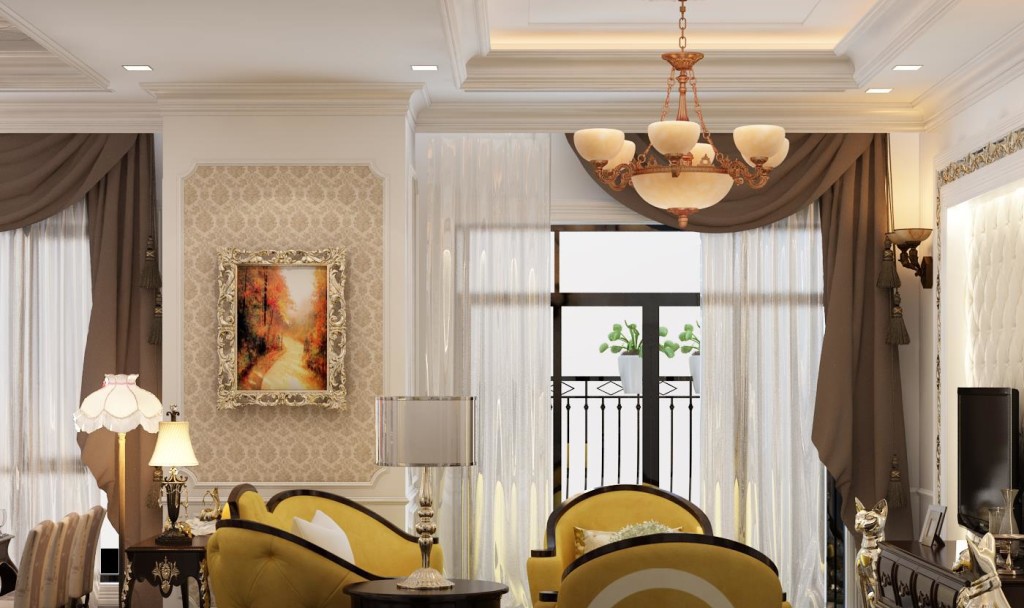 Căn hộ nhà Mr Hùng được thiết kế nội thất theo phong cách tân cổ điển, sang trọng nhưng cũng đơn giản, nhẹ nhàng, tràn ngập sắc màu nhờ tận dụng tốt ánh sáng tự nhiên. Màu trắng kết hợp với sắc vàng nhẹ từ giấy dán tường chính là hiệu ứng màu chủ đạo, khiến không gian căn hộ như mở rộng thêm. Màu sàn gỗ nâu tương phản, tạo sự liên hoàn và hài hòa trong thị giác. Những chi tiết trang trí trong tất cả đồ vật đều được chú trọng, làm nên nét cổ điển, sang trọng cho các gian phòng.