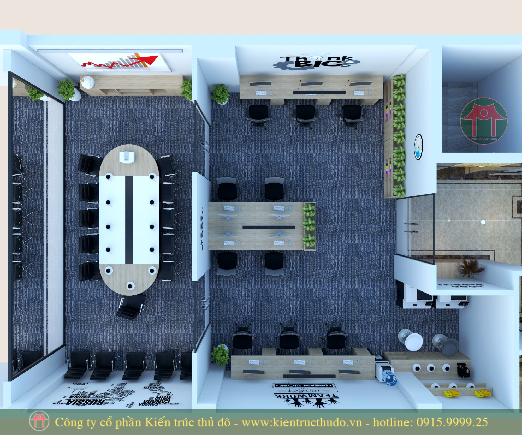 Phối cảnh thiết kế văn phòng góc nhìn từ trên cao