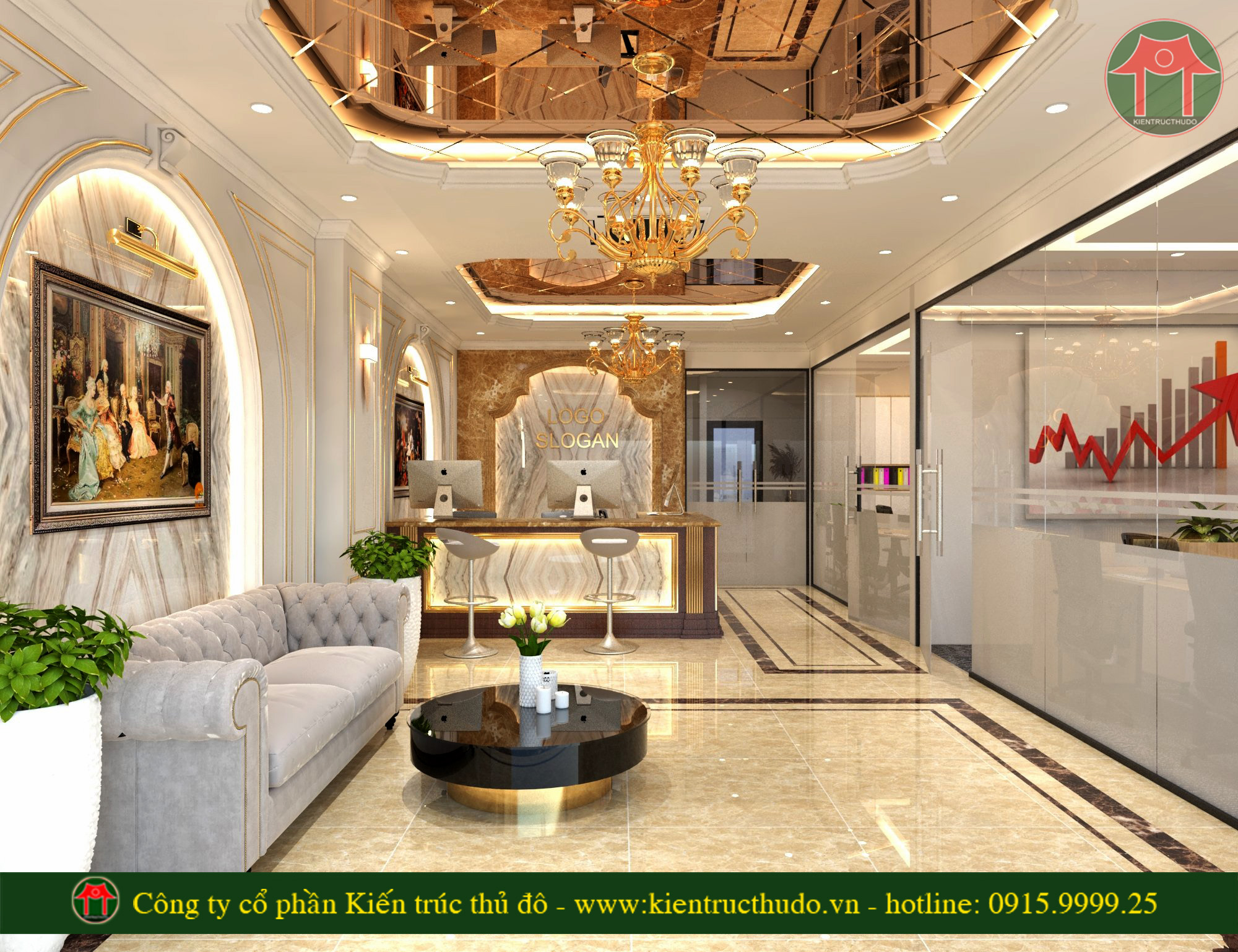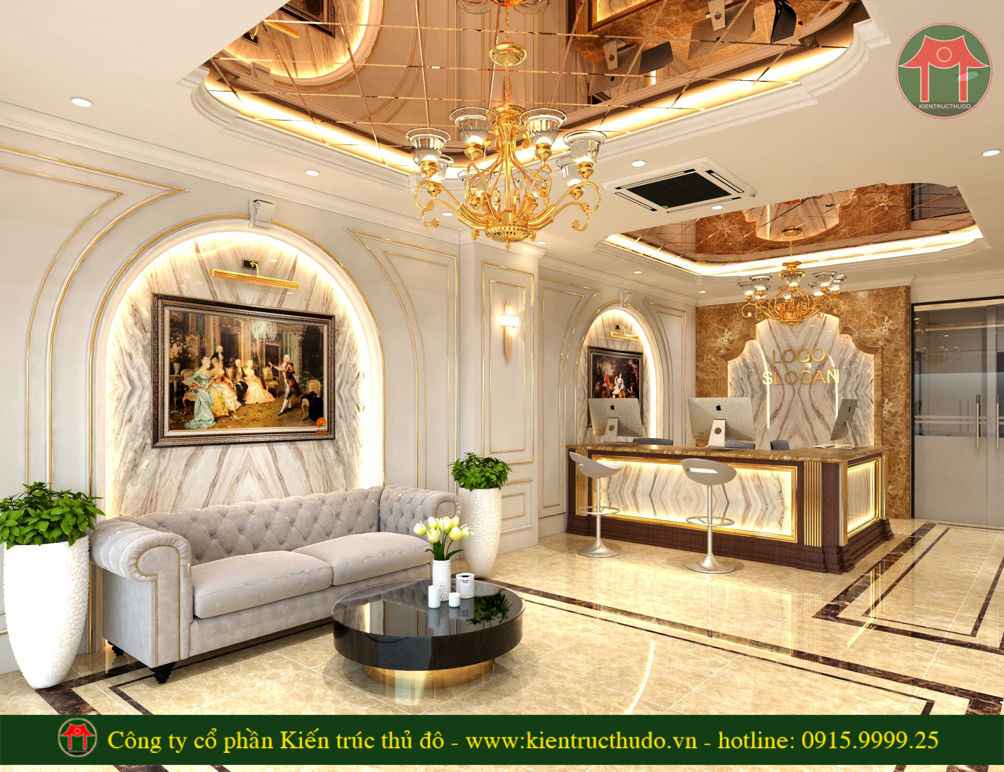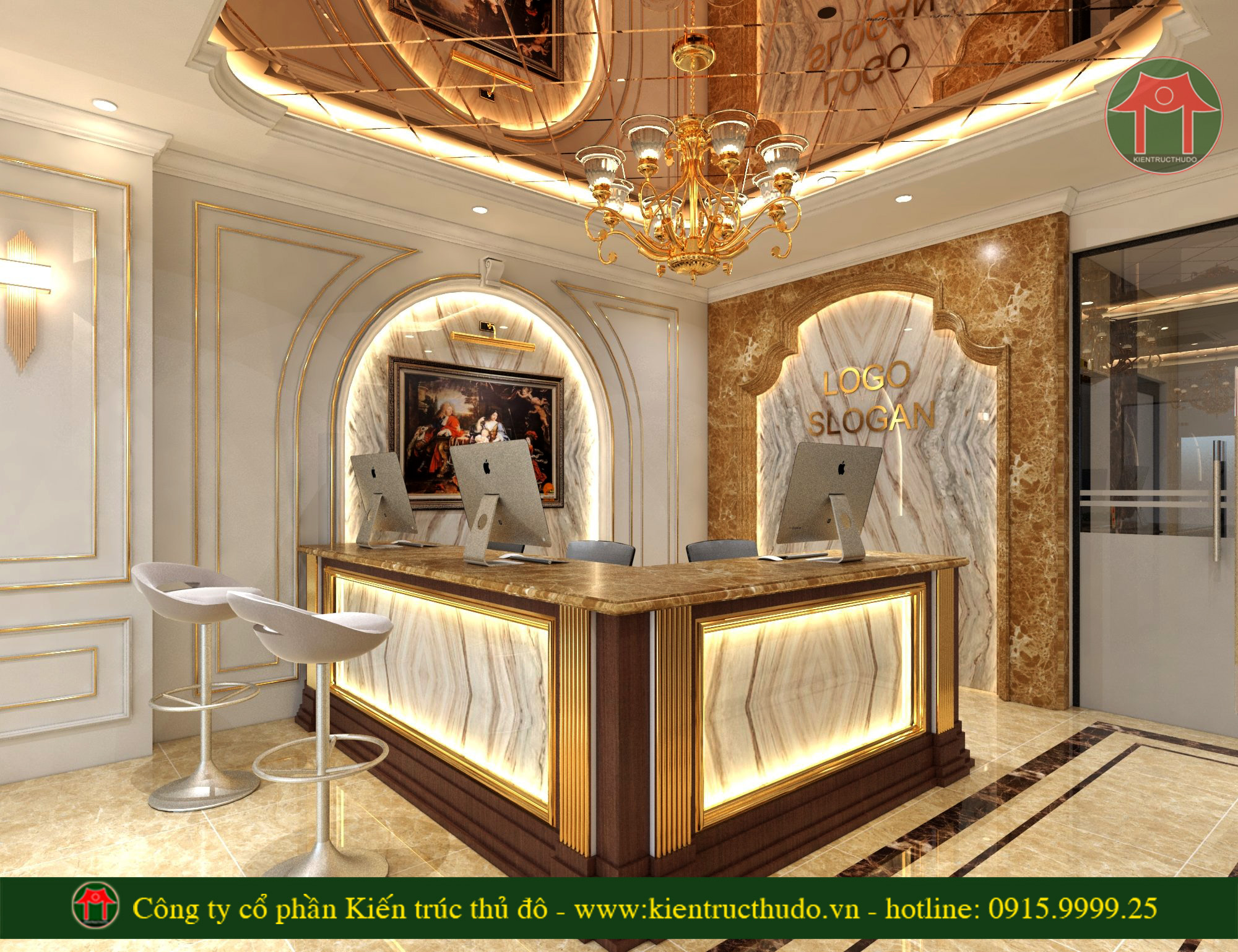 Thiết kế nội thất quầy lễ tân với phong cách tân cổ điển
